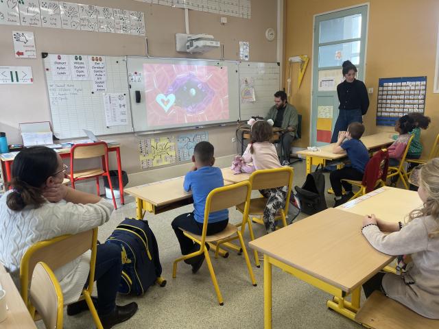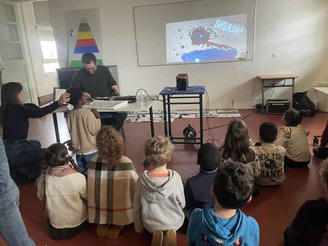 En amont de la diffusion de leur spectacle, les artistes Suzy LeVoid et Harry Hadler ont été à la rencontre de trois classes de CP/CE1 de l'école Jules Ferry. Au programme, des ateliers pour découvrir les disciplines du spectacle et en finalité une petite restitution mêlant dessin, musique et bruitage !